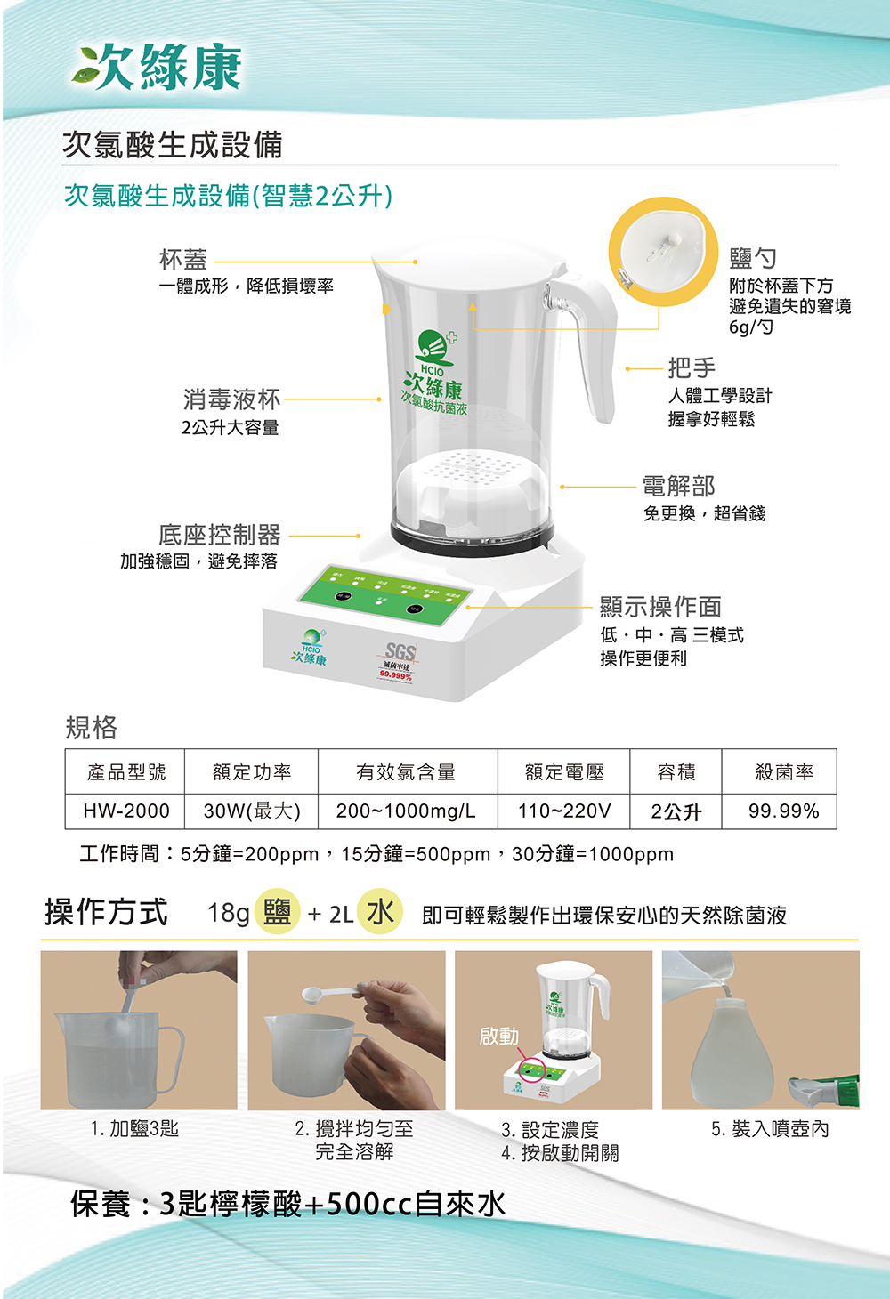 光禾館 - 次綠康生成機【WH-2000】生成量2公升 原廠貨 [已付訂金賣場]